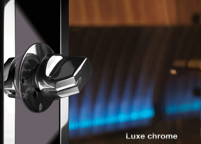 Gas taps and electric switches, chrome plated.
